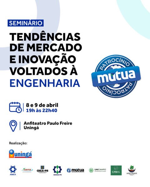 Começa nesta quarta-feira (8), em Maringá (PR), o seminário “Tendências de Mercado e Inovação Voltados à Engenharia”, reunindo estudantes, profissionais e especialistas para discutir os desafios e oportunidades da área diante das transformações tecnológicas e das novas exigências do mercado de trabalho.